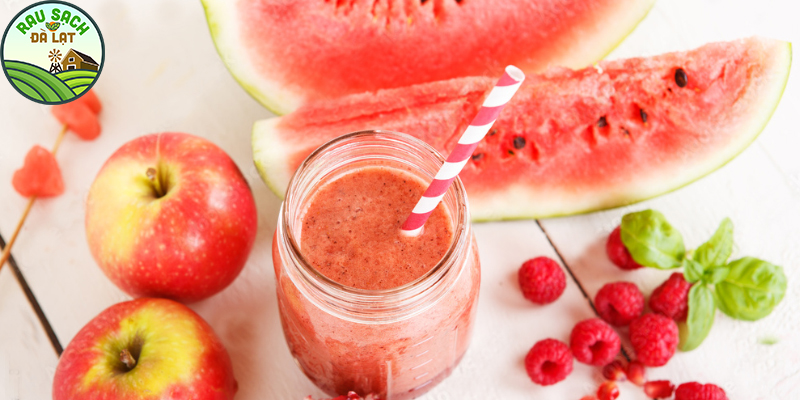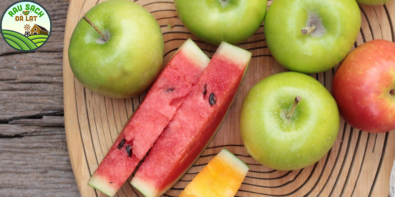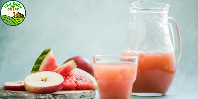 - Rửa sạch táo, bỏ hạt, cắt thành miếng; rửa sạch dưa hấu, bỏ vỏ, cắt thành miếng; rửa sạch chanh và cắt thành miếng.