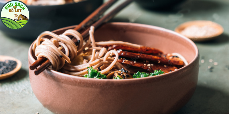 Mì soba là một món ăn đến từ Nhật Bản với nguyên liệu chính là kiều mạch rất giàu dinh dưỡng. Hương vị mì thanh và thơm mùi ngũ cốc, lại linh hoạt để nấu thành món mì nước, mì xào hay mì lạnh ăn đều ngon. Thay vì ăn mì tôm rất nghèo dinh dưỡng thì các bạn có thể chọn mì soba để chế biến các món ăn ngon lành mà tốt cho sức khỏe. Các bạn có thể tìm mua loại mì này trên các trang thương mại điện tử, hoặc bạn có thể áp dụng công thức này cho món bún lứt cũng hoàn toàn ổn nhé.