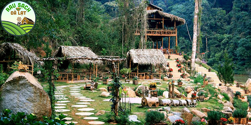 Một thiết kế khá độc đáo nữa tại Hoa Sơn Điền Trang chính là công trình này. Mặc dù vẫn giữ được nét mộc mạc vốn có, tuy nhiên nhà gỗ trên cây lại nổi bần bậc giữa thiên nhiên xung quanh, tạo thành nơi chụp hình yêu thích của các bạn trẻ.