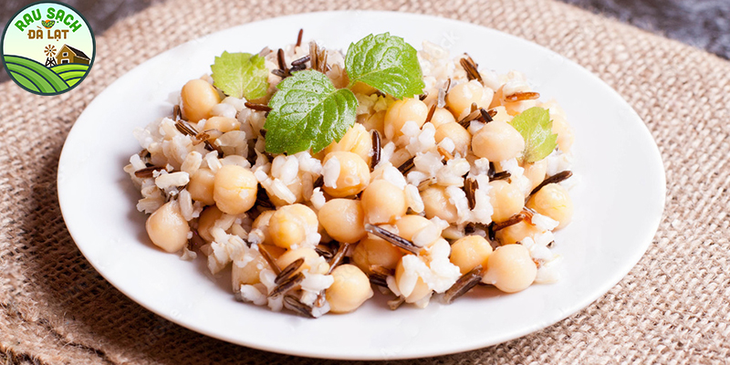 Sự xuất hiện của đậu gà đã thổi hồn vào món cơm khiến nó thêm phần hấp dẫn. Kết cấu bở của đậu gà kết hợp cùng độ dẻo của cơm gạo lứt rất vừa miệng và còn bổ sung lượng đạm dồi dào cho một bữa ăn tinh gọn.